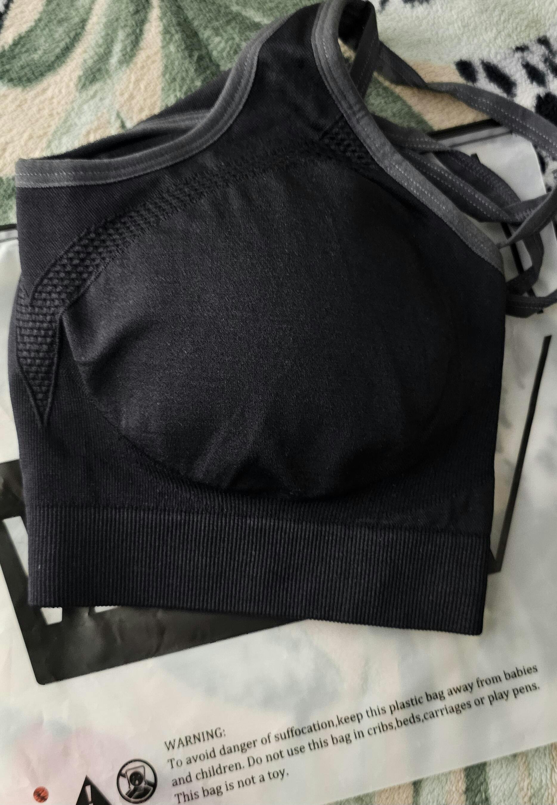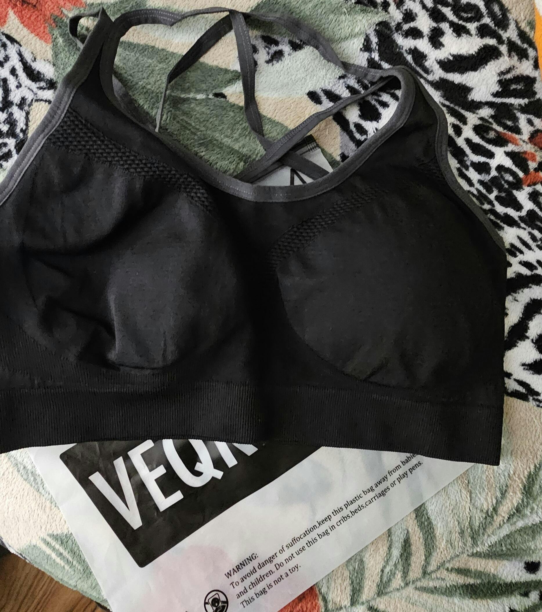 VEQKING Strappy Women's Sports Bras for Cross-Back Running with Removable Padding Black